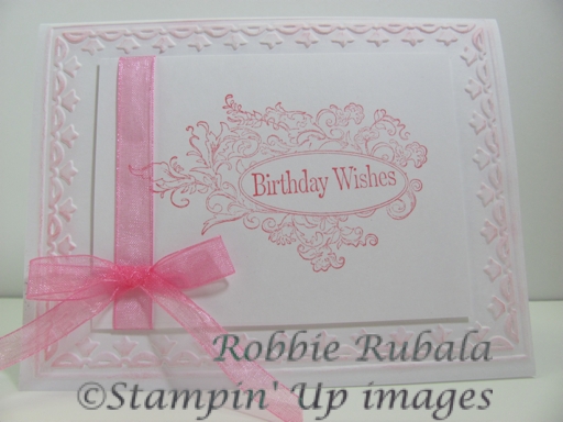 My second card is the last card for my Occasions Stamp-a-Stack. I needed a female birthday card and was inspired by a card I saw by Robin Merriman. Here is my creation from her card.