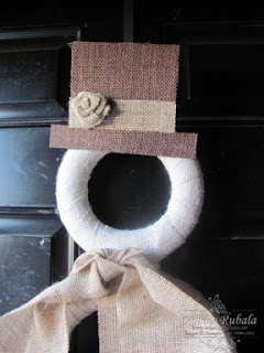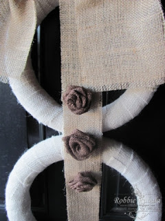 I go on Pinterest every once in a while. When I started looking at the site I was looking for home ideas, recipes, knitting and crocheting ideas. I ran across the cutest snowman door decor last year from Cindy at Cottage Instincts. It took me a while to find a source for the white burlap as well as 3 different sizes of styrofoam circles but I finally found it all and made this one like hers. I love this cute little guy and he looks so cute on my front door. Here is my snowman door decor.