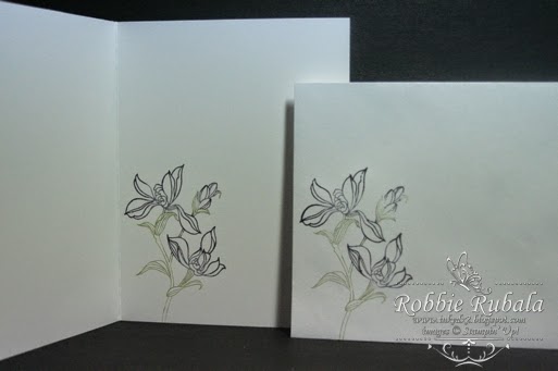 My card today is one of the cards I made for the card set I had a request for. The lady wanted cards to give to her sister for her birthday. The sister is very into flowers so all of the cards were flower cards. She told me her favorite flower was an iris. I went searching and our recently retired set Backyard Basics had an iris in it. I stamped several of them and looked up pictures of the flower so I knew how to color them. Here is the first card I made using the stamp.