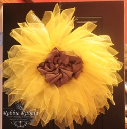 Ok, first off I have a picture of the wreath Candice and I made the other day. I took a picture of it hanging on my door so you can see how big it is. I love how sunny and cheery it is.