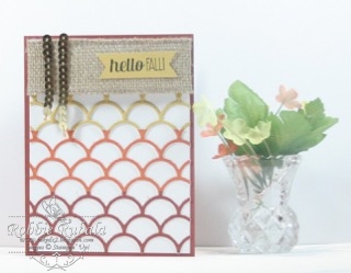 I had made up my mind that I would post this card and then immediately throw it in the trash. I showed my card to Jess and she agreed it was ugly. I then showed her the colors I had to work with and she said “I would have tried to do some kind of ombre”. Well that got me to thinking. I decided to see if I could redo the card. I went with the ombre idea and since I am not fond of these colors I needed to so something that was ombre but little colors. I thought of the Striped Scallop thinlet and decided to see what I could do with it.