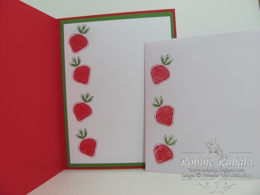 Cute card, Robbie. Love the checkered background you made. Hmm…seeing the strawberries reminds me I need to get back outside and get busy pickin'! Thanks for playing with the Red Hot Stampers.