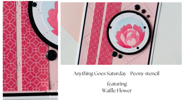 Happy Saturday stampers – I was in a pink mood for the Anything Goes Saturday – Peony stencil card.