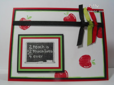 Stamps: 2 Teach, School Set (both retired) Paper: Basic Black, Green Galore, Real Red Ink: Basic Black Accessories: Green Galore & Real Red markers