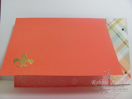 I found the idea for this paper bag album on Kathryn’s blog. I wanted to try it and plan on making this for Michaela’s album of pictures for when we went to San Francisco to find a place for her to live. I am using white lunch bags for this one. Since this was going to be her album I let her choose the colors. She chose coral and gold. I did not have any patterned paper with those colors nor was there any in the catalog – current or upcoming. So I picked up some paper with her colors. The colors I got did match the new In color Calypso Coral so I will be using that for her album.
