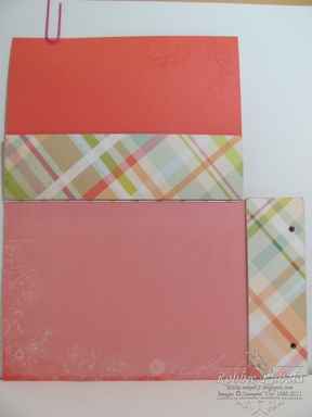 back of page with flap lifted – pockets in the 2 plaid pieces