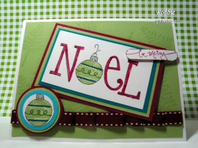 I used the color challenge at Color Throwdown which was to use Certainly Celery, Purely Pomegranate, and Taken With Teal. I had the Big on Christmas set on my table from a previous card so I thought I could use the Teal on the Christmas ball. Since I did not have a Purely Pomegranate marker, I use a blender pen and ink in the lid.