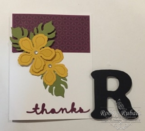 I saw a card online from another company and I liked the layout.  I decided to use our supplies to recreate it.  I used some of the Bohemian ds paper for a border at the top.  Then I used my framelits and cut out my flowers and sentiment.  I then glued it all onto my card front.  Here is my completed creation.