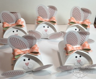 Today I am sharing another item I made for the fundraiser. I saw an adorable bunny using the Curvy Keepsake Box thinlit die. I used my Sharpie to die some rhinestones for the eyes. I also used the Boho Blossoms retired punch for the bunny tail. I think this bunny is so cute! I filled it with some Hershey Kisses. Here is what it looked like.