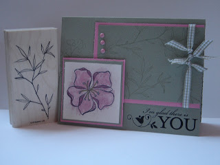Stamps: Embrace Life Paper: Mellow Moss, Regal Rose, and Very Vanilla Ink: Versa Mark and Basic Black Accessories: Moss Gingham Ribbon, Rose Brads, Cherished Memories Rub-ons, Metallic Pencils and Watercolor Crayons.