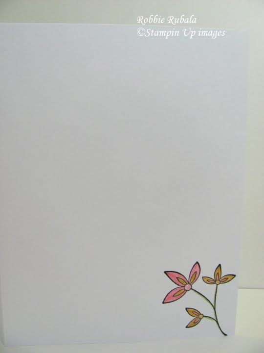 Stamps: All Holidays, Fine Flourish, Petal Pizzazz, Sweet Stems Paper: Certainly Celery, Pretty in Pink, So Saffron, white, Tea Party DS Ink: Basic Black, Certainly Celery, So Saffron Accessories: Certainly Celery – Pretty in Pink – So Saffron markers, Certainly Celery grosgrain ribbon, large flower punch, Pretty in Pink brads, sticky tape, dimensionals