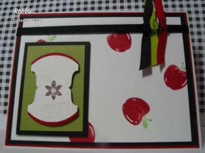 I wanted to make a card to celebrate all the apple festivals going on right now. I decided to modify this card and use a punched apple instead of the blackboard. It was a simple card and lots of fun to make and so appropriate for this time of year. Here is my case.