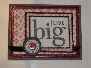 Stamp Sets: Riveting and Think Big Paper: Natural White, Basic Black, Basic Gray, DSP Accessories: Circle Punches, Jumbo Eyelet, Rhinestone Brad, Black Velvet Ribbon, and lots of Glitter