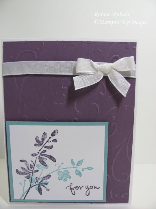 So, isn’t this a simple but pretty card? I need to find a stamp set I can use and do this one for convention. It would be a quick one to mass produce. I am off to play some more so I have cards for you for the next few days. I have my workshop tomorrow night and class on Wednesday so I have a lot to do. Thanks for looking and have a Marvelous Monday!