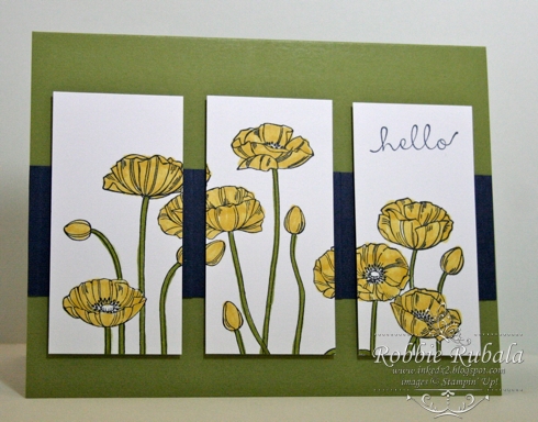 I was drawn to this sketch for some reason. I like the 3 panels and thought it would be great to use the Pleasant Poppies background set for them. The rest just fell together. Here is my creation.