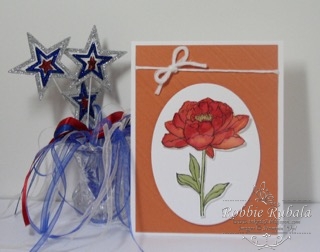 I will be honest with you I did not know what I was going to do with these colors. I don’t want to keep using Blushing Bride all the time. I am not a fan of Pumpkin Pie nor Cajun Craze. So I decided to color the flower with Pumpkin Pie. I did not like the looks so I added some Real Red. That looked bad so I colored the entire flower over with the red. So now I have a mixture and not sure what color it is. I think it looks good but you will have to tell me what you think. Here is the flower I created using the color challenge.