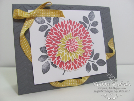 Robbie, your card is really nice for not liking the colors. ( ha ha ). I love what you did with the flower to make it pop. I like it – and as I said, I love the colors together. I've been making a lot with that color. Hummm…. we'll have to change your mind with this one, won't we? Very nice! Hugs!