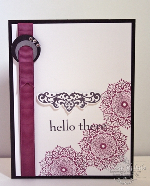 I like your ribbon bling! great idea! your card is beautiful and the rich tones are perfect for your design.