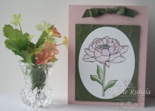 I wanted to continue with my coloring Challenge. Today I decided to do some coloring with my pencils. I found 2 that matched Blushing Bride and Mossy Meadow so I used them to color my image.