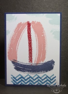 These were great colors. I saw an idea on Pinterest that I have been dying to try. Someone had used the Work of Art stamp set to make a sailboat. I thought it was so cute and I had wanted to see if I could do my version. I thought these colors would be perfect for this idea. Here is my version.