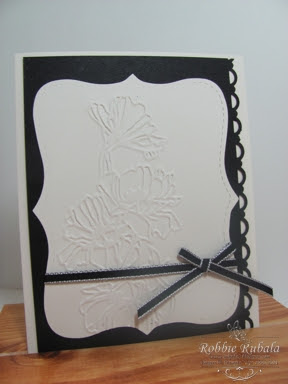I wanted to share a swap I did at VC Rocks. It was an ebony and ivory swap. You had to use black and vanilla. I had just gotten the Flower Garden embossing folder and decided to use it.