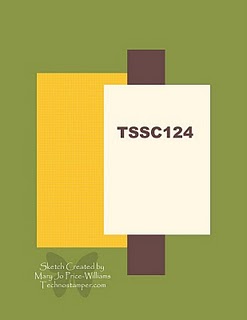 I am going to start a technique group. Each month we will do a new technique and then make a 6 x 6 page with the directions on it and a sample. We will also use the technique to make a card. I wanted to do emboss resist as our first card. I wanted to use the Vintage Vogue set. I used the sketch from Techno Stamper. Mary Jo posts a Monday Lunchtime sketch challenge each Monday. Here is her sketch and what I created for her challenge this week.