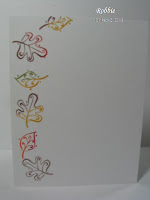 After I boxed up the cards yesterday so I could mail them out today I was able to create today’s card. I used 2 challenges again for this card. I used the sketch from the Sketch Saturday blog. I combined it with the fall/autumn challenge on the Our Creative Corner blog. I decided to use a technique that I had not used in about 2 years. I used the Crayon Resist technique. I love this technique for fall cards. I will have to remember to try it with snowflakes in the winter as I think it could be very pretty also. Here is the sketch and my creation.