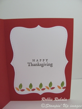 I saw a card that used the Season of Friendship set and the leaves were stamped and punched out with a circle punch. I like the look and decided to use that idea for another one of my workshop cards.