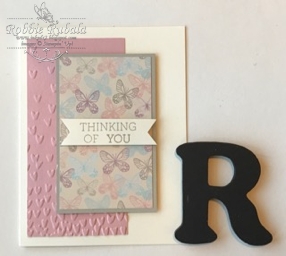 I decided to play with some of the Falling in Love dsp on this one ~ specifically one that is not one of my favorite. In the past I have shared a way to use the dsp you don’t care for by covering it with another layer. My card today is another way to dsp by using a small amount of it on a panel.
