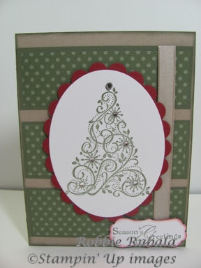 There was also a ribbon challenge at Stampin’ B’s Design Team. You had to use a ribbon but could not tie it or make a bow.