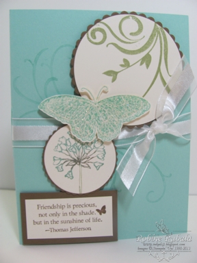 I am so glad it is the weekend. I have no plans to go anywhere today or tomorrow. I need to work on cards to post, a swap card, and my projects for the next round of Stampin’ Fun and Friends. Busy weekend!