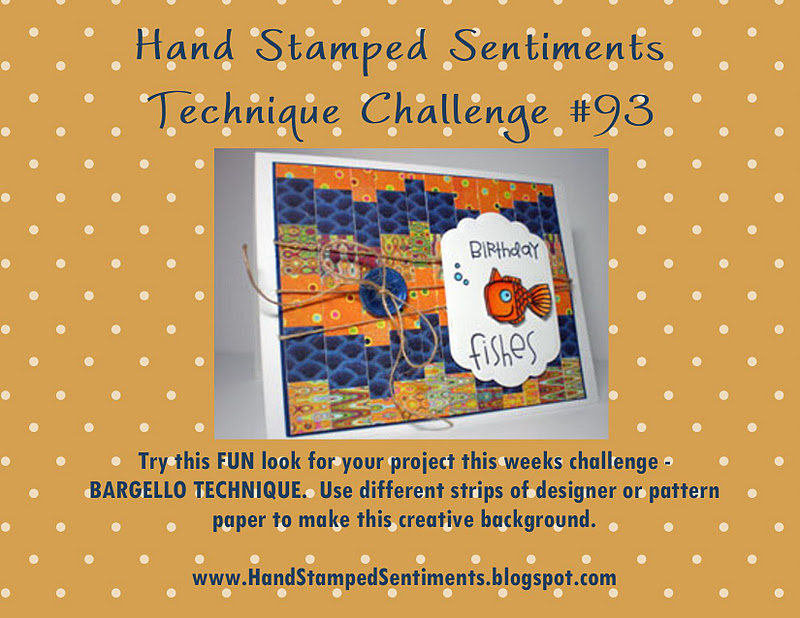 We have a challenge at Hand Stamped Sentiment this week that is a new one for me. We are to use the Bargello technique. This is a needlework technique that has been applied to papercrafting.