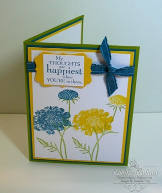 These are some great colors and can make a very pretty card. Here is my creation using these colors.