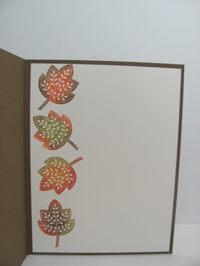 My swap group this month also had a fall theme with a twist. We had to do some embossing. I had planned on using the Autumn Splendor set but my good friend Carole’Anne beat me to it. I could have used the set but I wanted to offer some variety. I went to my next favorite fall set – Day of Gratitude.