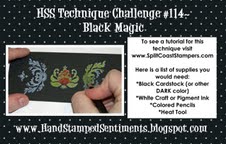 I am excited about our Hand Stamped Sentiments challenge this week since I am the hostess. I came up with a great technique called Black Magic.