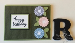 For this card I picked out colors that were similar to the card I was CASEing. I then chose some designer series paper for the background. I stamped my flowers and punched them out with a punch. The leaves were made using a retired 5 petal flower punch. I chose to use a birthday sentiment as I need some to sell. Here is my completed project.