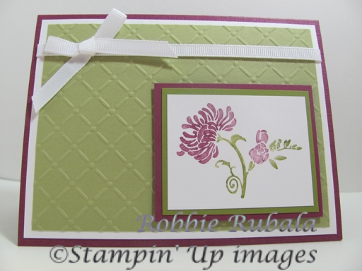 Beautiful card, Robbie — love the embossing on the background and the way you off-set the focal image! Thanks so much for playing along at Stamping 411 this week! Blessings, Gretchen
