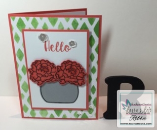 Hi Robbie, long time no see! I am enjoying Laura's Loft Hopping into Spring blog hop. I like the technique of your first card of putting down colour onto watercolour cardstock and then stamping over the top. The peonies are gorgeous grouped as they are. Cheers!