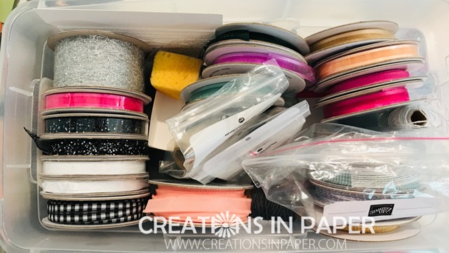 I hope I have given you some ideas and if you have your own way to storing your ribbon share it with us! We are all looking for ideas!