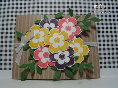 Today’s card was fun to make. I started with the challenge from Stampin’ B’s Design Team which was to create a gate fold card with a flower. When I read this I started thinking about what I wanted my card to look like and I thought it would be interesting if I could create a bouquet of flowers that would be focal point that was the closing of the card. I pulled my Petal Pizzazz set as I felt one of the flowers in the set would work perfectly. What do you think of my creation?