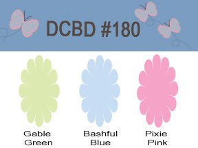 Stamps: Priceless, Herb Expressions Paper: Bashful Blue, Gable Green, Pixie Pink, white Bashful Blue, Gable Green, Pixie Pink Accessories: Whimsy wheel, white taffeta ribbon, Zots