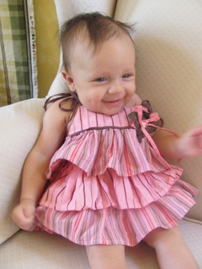 Yes I have to agree with the others… that little one is absolutely precious! Such a sweet smile and that dress is awesome on her!