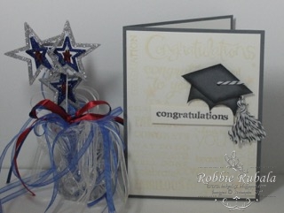 Here is the last graduation card I made for a customer’s request. This idea was from Andrea Walford. The background is made by using different congratulations and celebration stamps. I stamped them and embossed them in ivory to match the paper. Here is what the final creation looked like.