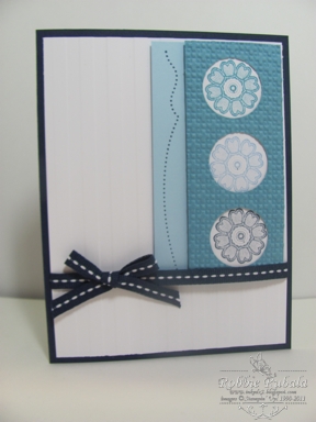 I was not certain which way I was going with this one but I decided to use the 3 circles as punched shapes with the image underneath. I went looking and decided to use the cute flower from Lacy and Lovely. Here is what I created for the combined challenges.
