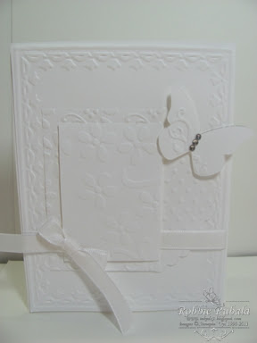 At Late Night Stampers this week we have a white challenge. We had to create a card using only white. The sentiment could be stamped in any color but that is the only color allowed. Since I don’t usually add a sentiment my card would be all white.