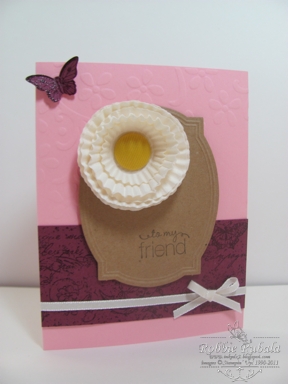 Robbie, I love this. Your cupcake flower is so pretty and I am so loving Rich Razzleberry right now! Awesome card, and great job combing the challenges. I am so happy to have you as part of the TSSC team and of course as my partner in running the LNS challenge too!