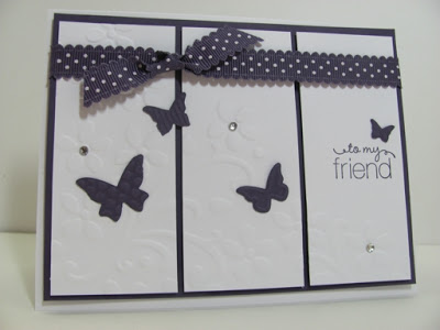 I loved this card and decided to use it. I changed the colors and used Elegant Eggplant. I also used a different sentiment set. Here is what I created.