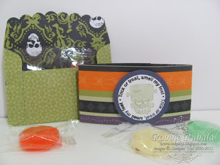Our challenge this week at Late Night Stampers was to create a treat holder. This was a real challenge for me. I do not get trick or treaters where I live so I don’t think of treats or ways to give treats as gifts. I finally decided to try the Scalloped Envelope die. I made one using some retired paper I had that I liked and put a few Life Savers inside. To keep it closed I made a belly band. Here is what I made.