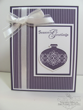 We have a new challenge this week at Late Night Stampers. We are to make non-traditional Christmas cards using any colors other that your normal red and green! When I saw this I knew what color I wanted to use. I thought it would be fun to make a Christmas card using Elegant Eggplant. I think this is such a pretty color and looks so good on a Christmas card. Here is what I created.