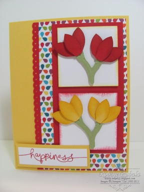 I saw a video on Valita’s Designs and Fresh Folds on how to make these tulips. I loved it so I had to play and used the idea for my card. Here is my interpretation of the sketch.